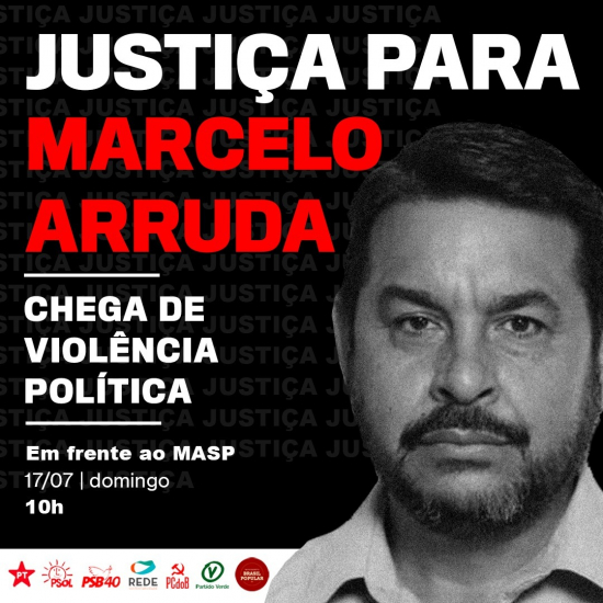 No domingo (17), será realizado o ato “Justiça para Marcelo Arruda. Chega de violência política”, às 10h, em frente ao Masp, na Avenida Paulista.