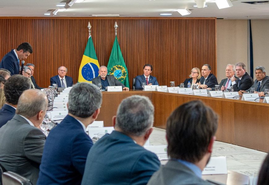 Lula se reuniu hoje com os 27 governadores da federação, e com os chefes dos demais poderes em Brasília. O encontro ocorreu como ato de desagravo aos Três Poderes da República, que foram atacados por terroristas bolsonaristas no último domingo (8).