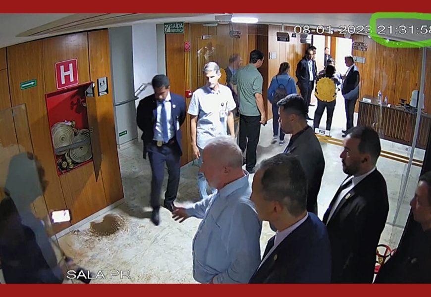 As gravações mostram a presença de membros do governo no local após os ataques e a indignação do presidente Luiz Inácio Lula da Silva (PT) diante da destruição. Ele chega ao prédio um pouco antes das 21h30 e, no trajeto até o gabinete presidencial, pede com gestos enfáticos que sua equipe registre o estrago.