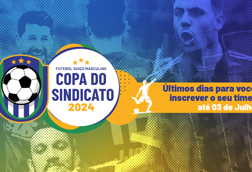 As inscrições para a Copa do Sindicato de Futebol Suíço Masculino 2024 estão abertas no período de 03 de junho a 03 de julho. Os jogos serão disputados aos sábados de manhã, na Sede Campestre do Sindicato, em Piraquara, a partir da segunda quinzena de julho. Confira as regras, monte seu time e participe!