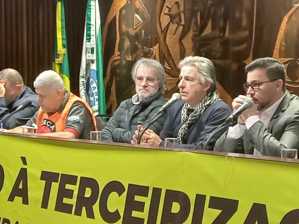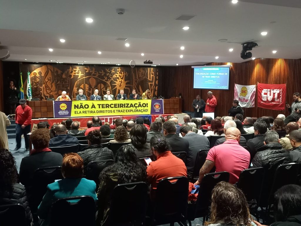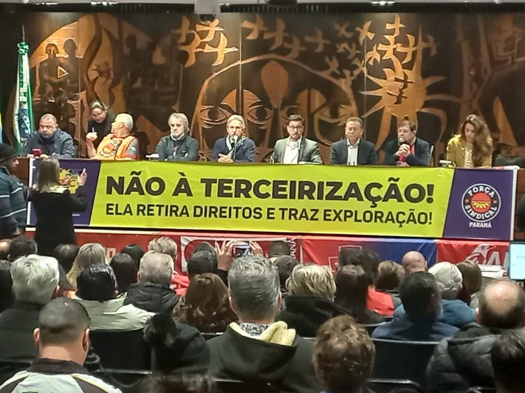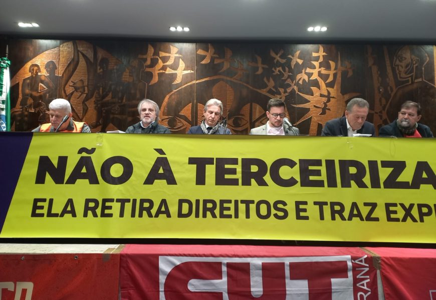 Ao final de sua fala, o presidente da Fetec fez uma sugestão aos presentes na audiência. “Quero lançar aqui que, além do movimento sindical, procuremos outras entidades representativas, a magistratura, políticos, entre outros, para construir o Fórum Paranaense de Combate às Terceirizações, como forma retirar de direitos e de concentração de riqueza”, encerra.
