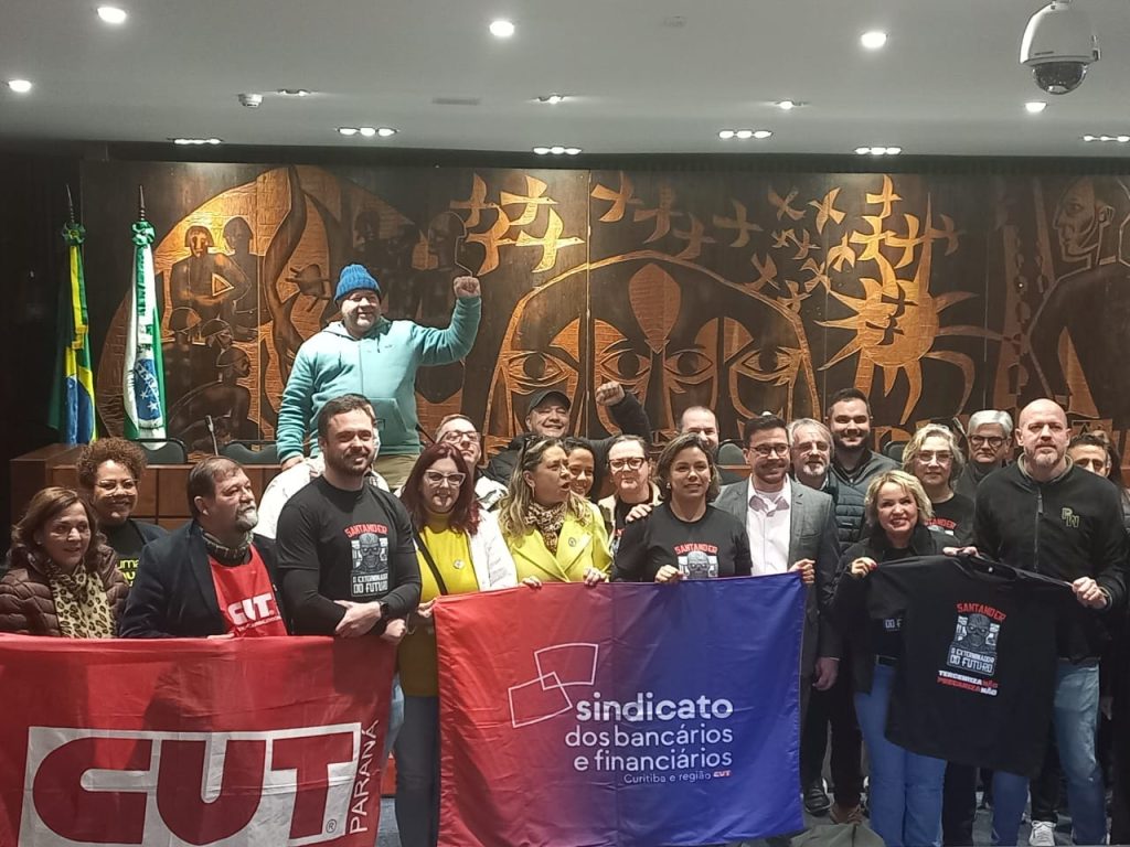 O secretário de organização e administração do Sindicato de Curitiba, Denner Halama, reforça a narrativa contra o Santander. “Já foi identificado mais de 200 CNPJs coligados. O Santander contrata em vários CNPJs, tirando da nossa categoria, tirando da nossa segurança de convenção coletiva, tirando da nossa proteção trabalhista, colocando em outras categorias que têm uma representação menor, ou talvez menos direitos, que foram conquistados agora, ou alguns CNPJs que pertencem a algumas categorias que nem organização sindical tem. Então, Santander faz isso de uma forma escancarada e com certeza é o tubo de ensaio para os outros bancos. Santander é um descumpridor de lei há muito tempo”, salienta.