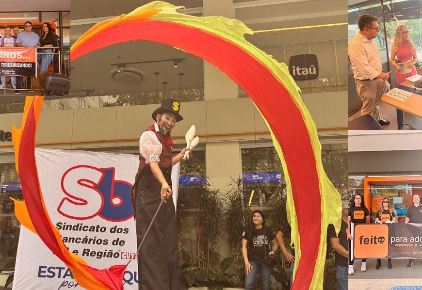 As manifestações desta terça-feira expressam a indignação e a força de uma categoria que não aceita retrocessos. Durante todo o dia, dirigentes sindicais estão em frente às unidades do Itaú, dialogando com trabalhadores e com a sociedade para denunciar as injustiças e reafirmar: “Quem constrói o lucro do banco são os bancários — e eles merecem respeito.”