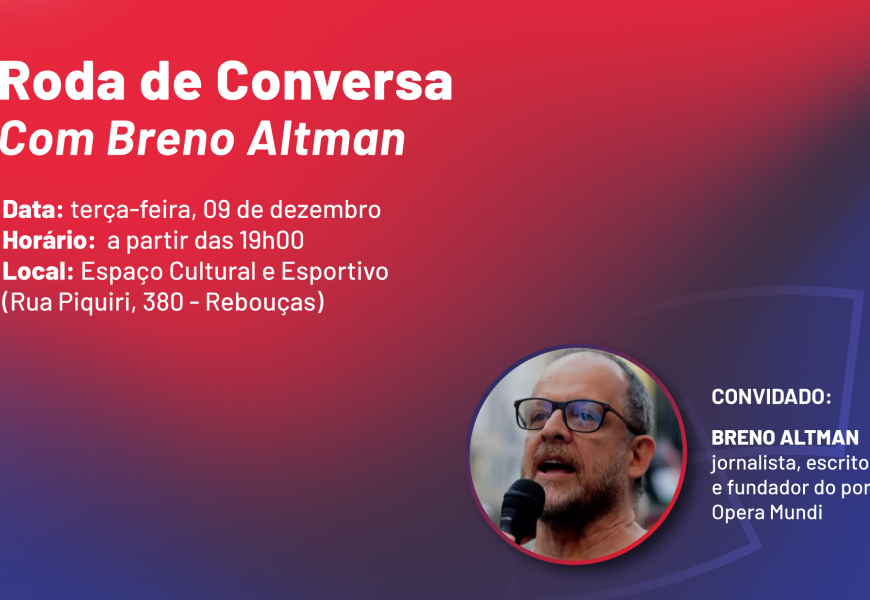 Na próxima terça-feira, 09 de dezembro, o Sindicato dos Bancários e Financiários de Curitiba e região e a Fetec-CUT/PR promovem, a partir das 19h00, uma Roda de Conversa com o jornalista e escritor Breno Altman, no Espaço Cultural e Esportivo. Na conversa, ela irá abordar a conjuntura nacional e as perspectivas políticas para o cenário eleitoral em 2026, com foco no cenário geopolítico internacional e na atuação de Donald Trump. Participe!