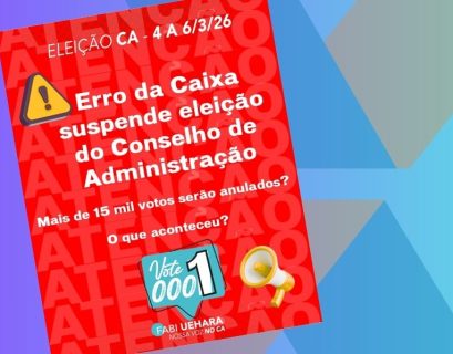 Após uma falha grave por parte do banco, a eleição para escolher a representação dos empregados no Conselho de Administração (CA) da Caixa Econômica Federal irá reiniciar nesta sexta-feira, 06 de março, das 8h00 às 18h00. E terá continuidade às 8h00 de segunda-feira, 09 de março, até às 17h00 da terça-feira, 10 de março. Não haverá votação no sábado (07) e domingo (08).