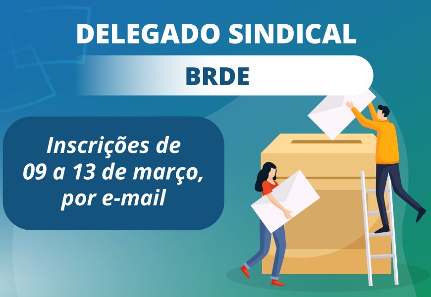 O Banco Regional de Desenvolvimento do Extremo Sul (BRDE) está com o processo eleitoral de delegado sindical do ano 2026 aberto. O prazo de inscrição já começou e é no período de 09 a 13 de março, pelo e-mail seger@bancariosdecuritiba.org.br.