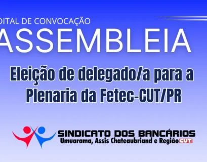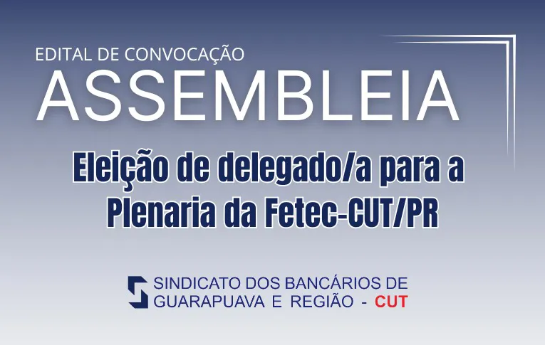 O Sindicato dos Empregados em Estabelecimentos Bancários de Guarapuava e Região, inscrito no CNPJ/MF sob o nº 78.279.734/0001-49, registro sindical nº MTB/313.690, por seu presidente abaixo assinado, convoca todos os bancários e bancárias associados à entidade, dos municípios de sua base territorial, Guarapuava, Boa Ventura do São Roque, Campina do Simão, Candói, Cantagalo, Espigão Alto do Iguaçu, Foz do Jordão, Guamiranga, Goioxim, Inácio Martins, Laranjal, Laranjeiras do Sul, Manoel Ribas, Marquinho, Mato Rico, Nova Laranjeiras, Nova Tebas, Palmital, Pinhão, Pitanga, Porto Barreiro, Prudentópolis, Quedas do Iguaçu, Reserva do Iguaçu, Rio Bonito do Iguaçu, Santa Maria do Oeste, Turvo e Virmond, para Assembleia Geral Extraordinária que será realizada no dia 23 de março de 2026, às 17 horas, no Escritório do sindicato, situada à Rua Capitão Frederico Virmond, 2563, 2º andar, Centro, Guarapuava/PR, para discutir e deliberar sobre a seguinte pauta: