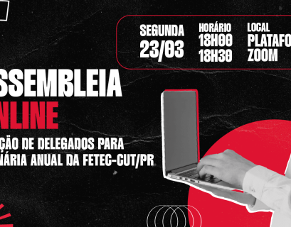 🗳️ A eleição será realizada nesta quarta-feira, 25 de março, em formato online, no período das 8h00 às 18h00, no link https://eleicaodelegados.votabem.com.br/. O mandato do delegado sindical eleito será de 01 de abril de 2026 a 31 de março de 2027.