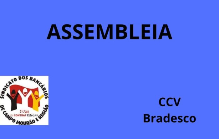 Ler MaisAssembleia dos bancários do Bradesco na base de Cornélio dia 18 vai votar proposta da CCV