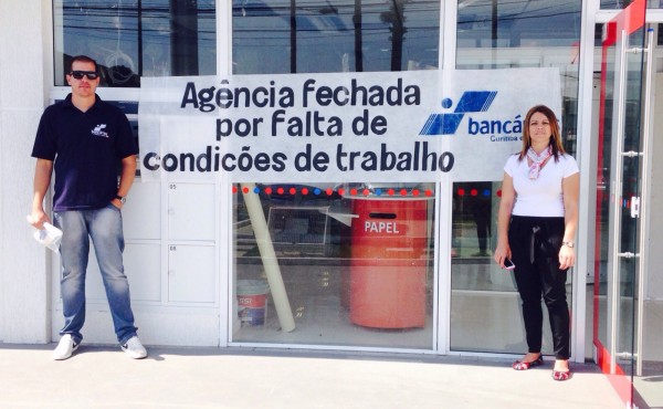Por conta do ataque ao Bradesco, a agência bancária foi fechada pelo Sindicato dos Bancários de Curitiba e Região (Seeb Curitiba). A dirigente sindical Nilceia Aparecida do Nascimento informou que o local ainda está bastante danificado. “O banco até quis abrir a agência hoje, mas nós não permitimos. O local ainda não oferece condições mínimas de segurança para que o bancário possa trabalhar. Acredito ainda que nem mesmo amanhã (2) o espaço deverá ser aberto”, revela.