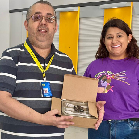 Segundo o presidente da entidade, Damião Rodrigues, este utensílio é muito utilizado no dia a dia dos bancários e bancárias, pois nem sempre há tempo para fazer a refeição em casa ou em restaurante no intervalo para o almoço. “Com a redução do número de funcionários nos bancos, nas agências menores a sobrecarga de serviços obriga a categoria a trazer pronta sua refeição, porque nem sempre tem pessoal para dar conta do atendimento na hora de almoçar”, conta.