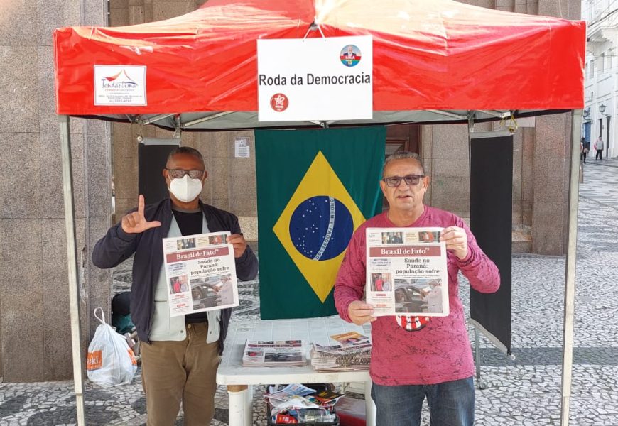 A banca da Federação dos Trabalhadores em Empresas de Crédito do Paraná (Fetec-CUT-PR) recebeu nesta quinta-feira (25) a nova edição do jornal Brasil de Fato, que é distribuído gratuitamente para a população.