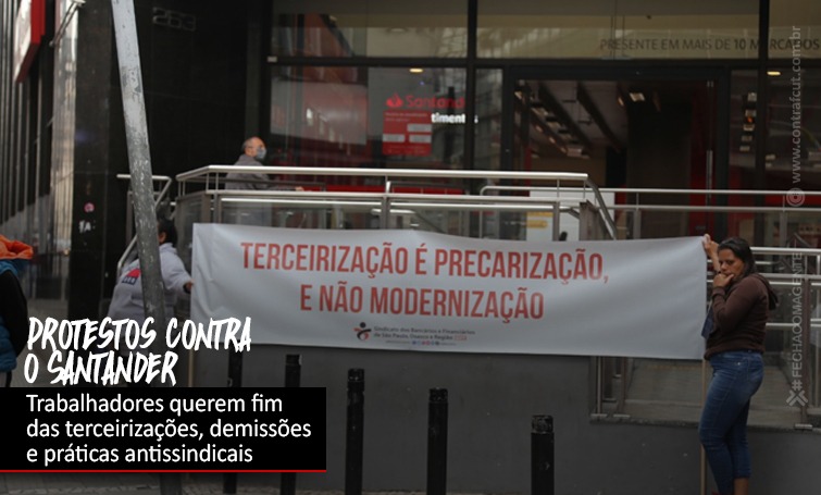 Bancários realizaram uma semana de protestos em diversas cidades do país contra as terceirizações realizadas pelo Santander. Desde 2020, o banco vem abrindo novas empresas, para onde está transferindo compulsoriamente seus funcionários.
