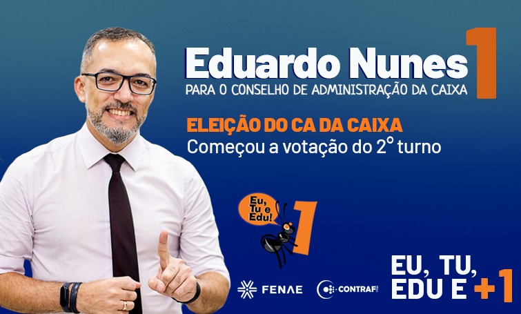 Começou nesta sexta-feira (5) e segue até quarta-feira (10) a votação do segundo turno da eleição para a definição da representação das empregadas e empregados no Conselho de Administração da Caixa Econômica Federal. A Confederação Nacional dos Trabalhadores do Ramo Financeiro (Contraf-CUT) e a maioria das entidades de representação e associativas das empregadas e empregados da Caixa orientam voto no candidato Eduardo Nunes.