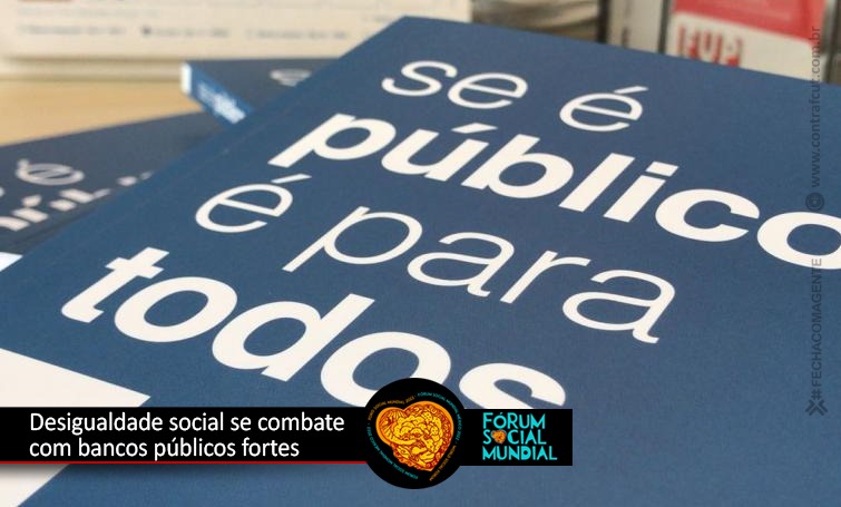 A terceira das três oficinas que a Confederação Nacional dos Trabalhadores do Ramo Financeiro (Contraf-CUT) organizou para o Fórum Social Mundial 2022, que acontece entre os dias 1º e 6 de maio, com eventos presenciais na Cidade do México, atividades híbridas e outras totalmente online, acontece na quinta-feira (5), às 10 horas, com o tema desigualdade social se combate com bancos públicos fortes.