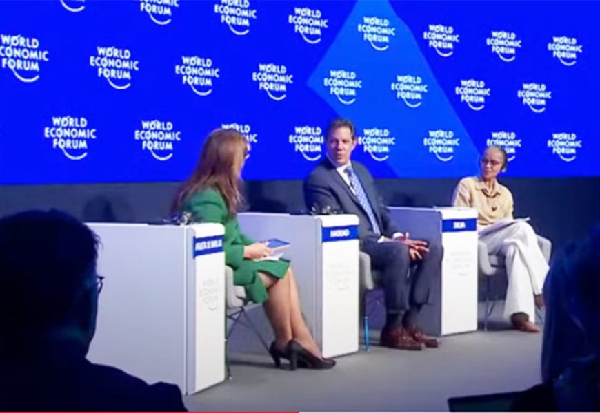 Os ministros Fernando Haddad (Fazenda) e Marina Silva (Meio Ambiente) participaram na manhã desta terça-feira (17), no horário de Brasília, do painel sobre o Brasil no Fórum Econômico Mundial, em Davos, na Suíça, representando o governo de Luiz Inácio Lula da Silva. Ambos foram questionados, de modo geral, sobre os desafios da fase que se inicia no país, do ponto de vista da luta contra o extremismo bolsonarista, propostas econômicas e política ambiental.