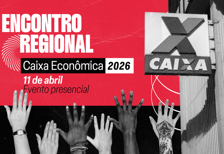 No sábado, 11 de abril, empregados e empregadas da Caixa Econômica Federal da base do Sindicato dos Bancários e Financiários de Curitiba e região realizam seu Encontro Regional 2026. O evento será presencial, a partir das 08h30, na Fetaep (Rua Piquiri, 890).