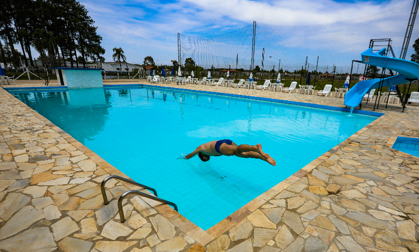 As piscinas (adulto e infantil) da Sede Campestre do Sindicato* continuam funcionando aos sábados e domingos, das 10h00 às 19h00. Em função da pandemia da Covid-19, o limite de público é de 50% da capacidade e o acesso só é permitido a associados, familiares e convidados mediante reserva prévia.