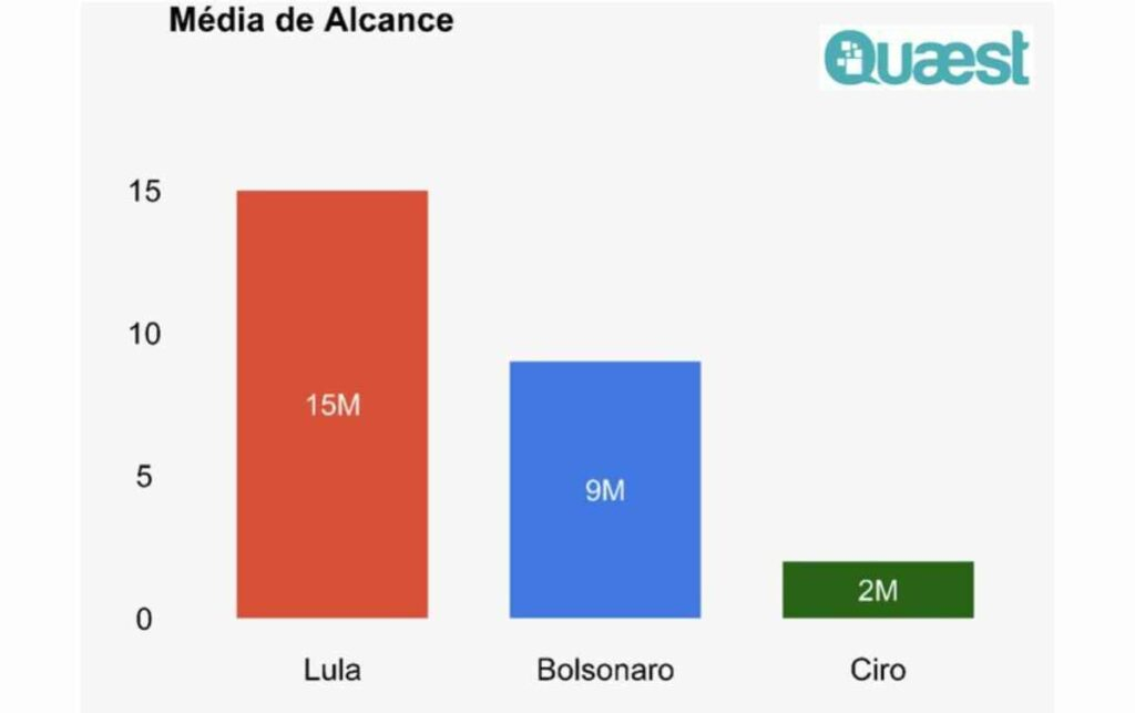 A entrevista do candidato à presidência Luiz Inácio Lula da Silva (PT) ao Jornal Nacional, na noite dessa quinta-feira (25), teve melhor desempenho nas redes sociais do que as entrevistas de Jair Bolsonaro (PL) e Ciro Gomes (PDT). Monitoramento do Instituto Quaest de pesquisas revela que 15 milhões de pessoas foram alcançadas pelas postagens sobre a entrevista de Lula durante sua exibição, o que representou a melhor média de alcance de postagens.