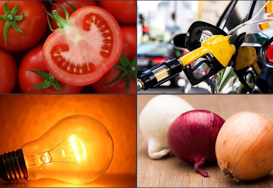 Cebola sobe, tomate cai