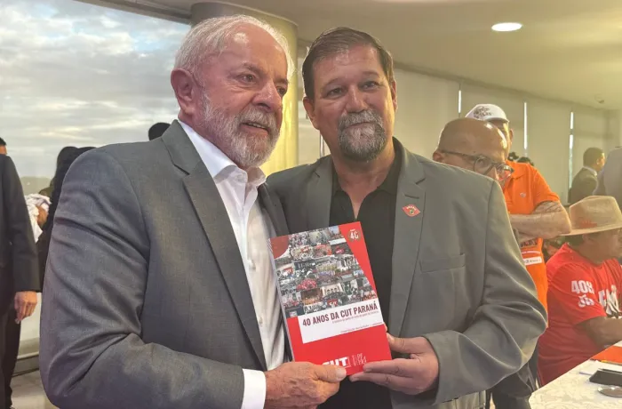 O presidente da CUT Paraná, Marcio Kieller, entregou ao presidente Luiz Inácio Lula da Silva um exemplar do livro que resgata os 40 anos de história da Central no estado. O encontro aconteceu durante a reunião de Lula com dirigentes sindicais a após uma grande marcha da classe trabalhadora em Brasília nesta quarta-feira (15).