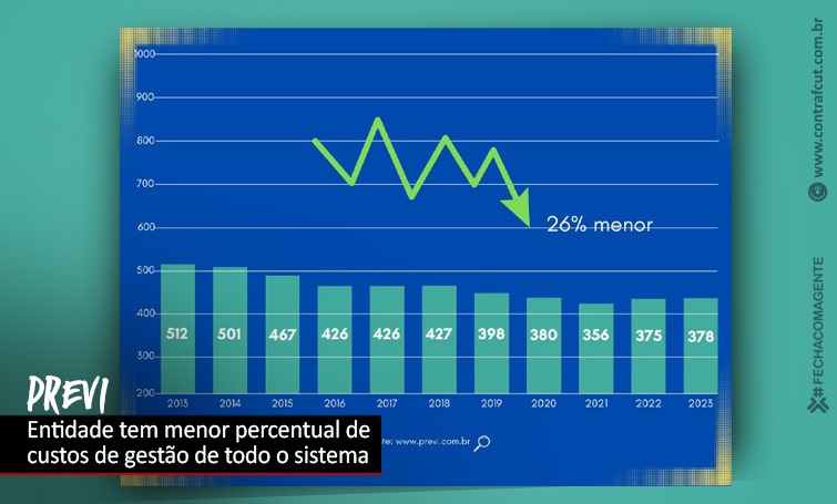 Nos últimos 11 anos, a Caixa de Previdência dos Funcionários do Banco do Brasil (Previ) conseguiu reduzir em 26% as despesas administrativas, ou seja, os custos com a gestão dos investimentos e dos planos de benefícios, que caíram de R$ 512 milhões, em 2013, para R$ 378 milhões, em 2023.