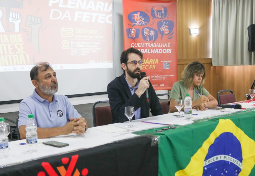 A primeira palestra da Plenária Anual do Sistema Diretivo da Federação dos Trabalhadores em Empresas de Crédito do Paraná (Fetec-CUT-PR) foi realizada pelo advogado do Gasam Advocacia Rubens Bordinhão de Camargo Neto, com o tema “Transformações nas relações laborais: Desafios da Justiça do Trabalho no Brasil”. O assessor jurídico fez uma análise de como a redução de direitos dos trabalhadores e a restrição de acesso à Justiça do Trabalho têm sido promovidas em nome de uma suposta ‘segurança jurídica’ para os empregadores e da redução da litigiosidade que, também supostamente, há na Justiça do Trabalho.