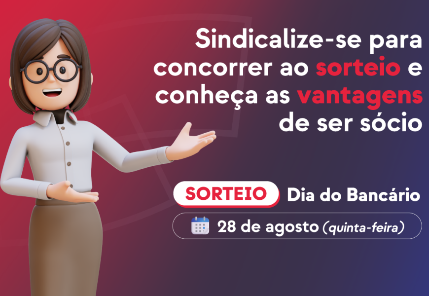 Quem ainda não é sócio ou sócia pode fazer a sindicalização até o dia 26 de agosto para concorrer aos sorteios. Ao se associar ao Sindicato, você passa a contribuir mensalmente com um valor equivalente a 1% das verbas fixas, com teto de R$ 160,10. Ou seja, um pequeno investimento, mas que te garante muitos direitos e benefícios.