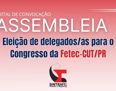 Sindicato de Paranavaí convoca Assembleia para a eleição de delegados para o Congresso da Fetec-CUT/PR