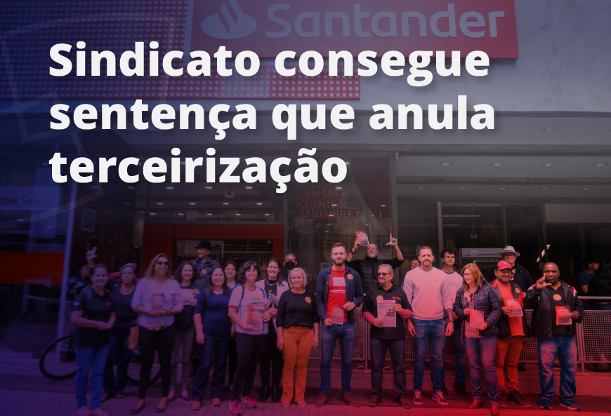 A 4ª Vara do Trabalho de Curitiba proferiu, nesta quarta-feira, 24 de janeiro, decisão favorável à nulidade do processo de terceirização, que transferiu bancários do Santander para a empresa SX Tools, como comerciários, realizada em outubro de 2022. A ação foi ajuizada pelo Sindicato dos Bancários e Financiários de Curitiba e região, por meio de sua assessoria jurídica, para os trabalhadores de sua base.