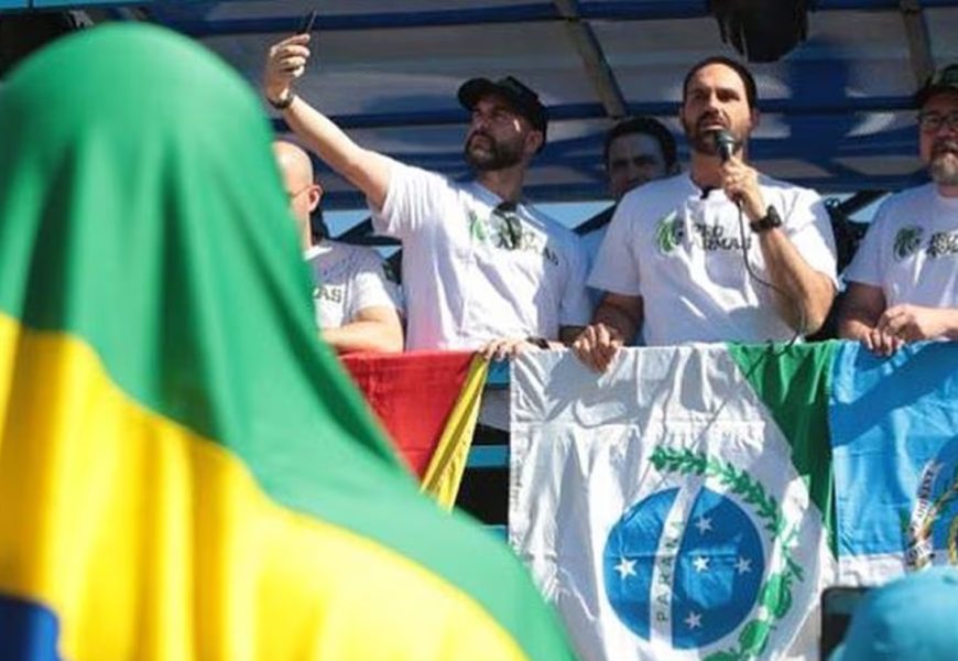 Nesse domingo (22), Eduardo Bolsonaro esteve em Buenos Aires, capital da Argentina, para apoiar o candidato da extrema direita, Javier Milei, durante o primeiro turno das eleições. Novamente sua obsessão por armas causou constrangimento. Desta vez, foi durante entrevista a um emissora de TV argentina, quando defendeu o acesso a armas no país vizinho, proposta endossada por Milei. “Colocar adiante armas de fogo nas mãos dos cidadãos significa dar condições de que tenham a legítima defesa”, afirmou o “zero três”.