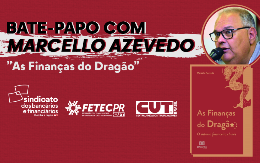 Na terça-feira, 10 de dezembro, o Sindicato dos Bancários e Financiários de Curitiba e região, em parceria com a Fetec-CUT-PR e CUT-PR, promove um bate-papo com o professor e geógrafo Marcello Azevedo, sobre seu livro “As Finanças do Dragão: O sistema financeiro chinês” (Editora Dialética, 2024). O encontro será a partir das 14h00, no Espaço Cultural e Esportivo.