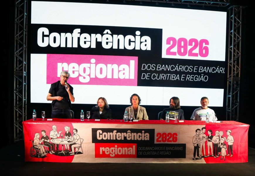 Nos dias 24 e 25 de abril, o Sindicato dos Bancários e Financiários de Curitiba e região realizou sua Conferência Regional 2026, com programação que incluiu uma mesa de análise de conjuntura política, debates sobre saúde do trabalhador e discussões coletivas sobre as pautas gerais e as reivindicações da categoria. Após a etapa regional, a base de Curitiba e região está pronta para participar da Conferência Estadual dos Bancários, organizada pela Fetec-CUT/PR e que será realizada nos dias 16 e 17 de maio.