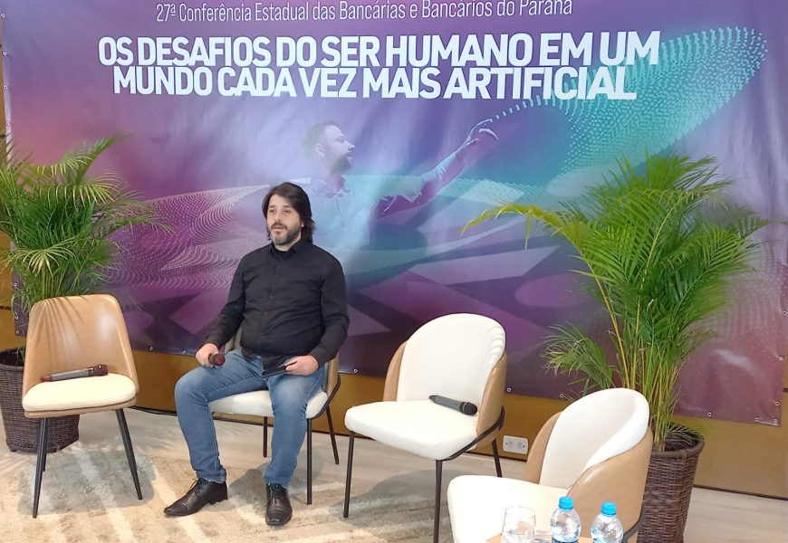 O secretário-geral da Federação dos Trabalhadores em Empresas de Crédito do Paraná (Fetec-CUT/PR), Ewerton Luís Lopes, iniciou a 27.ª Conferência Estadual dos Bancários e Bancárias do Paraná. Participam, de forma online, representantes dos 10 sindicatos filiados da federação (Curitiba, Apucarana, Arapoti, Campo Mourão, Cornélio Procópio, Guarapuava, Londrina, Paranavaí, Toledo e Umuarama).